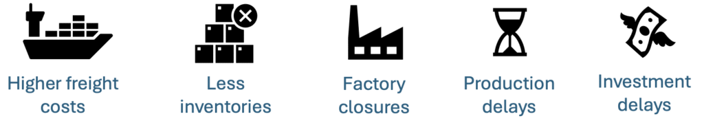 Cross-border tariffs disrupt the supply-demand balance. It may take years for Businesses to move their manufacturing facilities to new low-tariff countries.